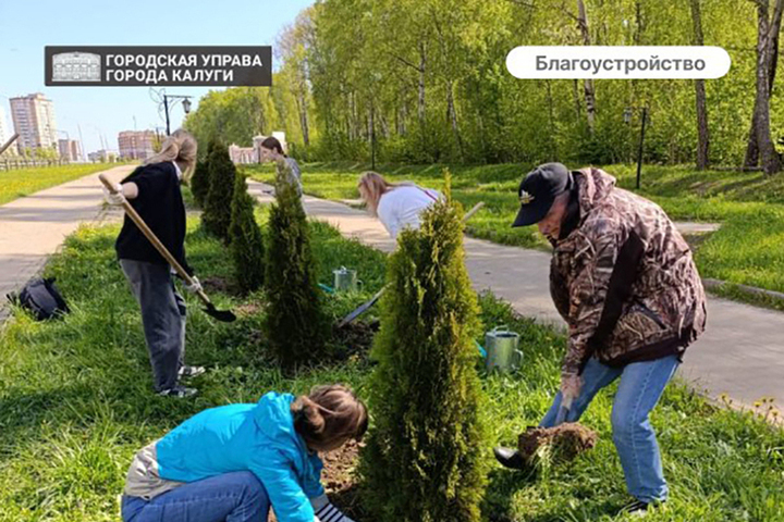 Сотрудники Управления городского хозяйства Калуги 15 мая приняли участие во всероссийской акции «Сад памяти». У входа в Губернский парк они высадили 30 туй в честь павших в годы Великой Отечественной войны.