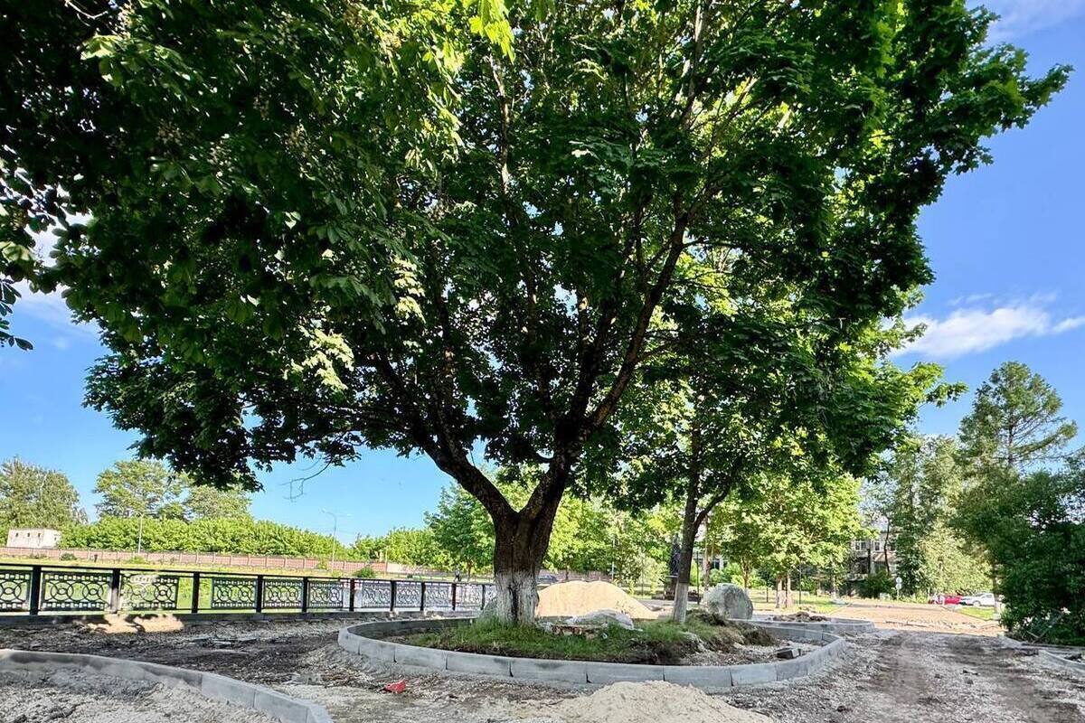 Одновременно идет обновление памятника «Скорбящая мать» и прилегающей территории: уже отремонтирован пьедестал, установлены фонари, впереди — мощение плиткой и установка скамеек.