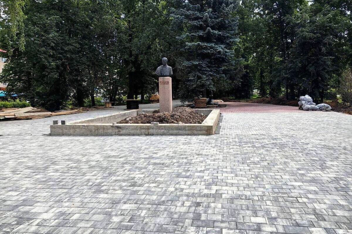 Он рассказал, что работы по укладке плитки там уже завершены на 90 %. Кроме того, рабочие проложили кабель для наружного освещения и установили закладные элементы под будущие опоры.