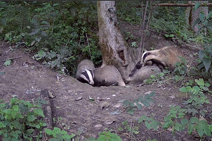 В заповеднике «Калужские засеки» фотоловушка засняла игры маленьких барсучат возле норы.
