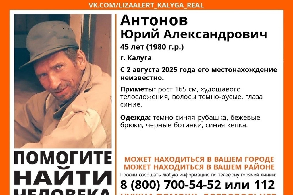 Со 2 августа местонахождение 45-летнего калужанина остаётся неизвестным.