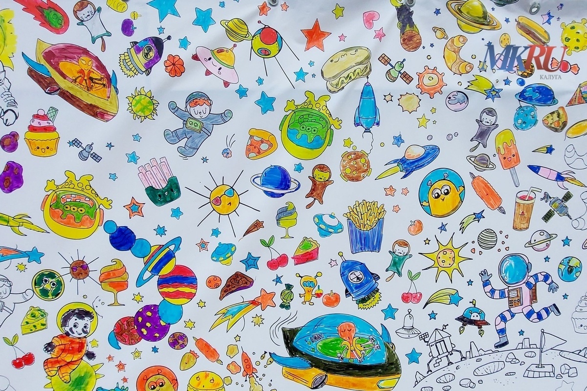 На вертолетной площадке на набережной Яченского водохранилища раскрашивают самую большую космическую раскраску. Ее длина 85 метров. На ней нарисованы космонавты, ракеты и инопланетяне.