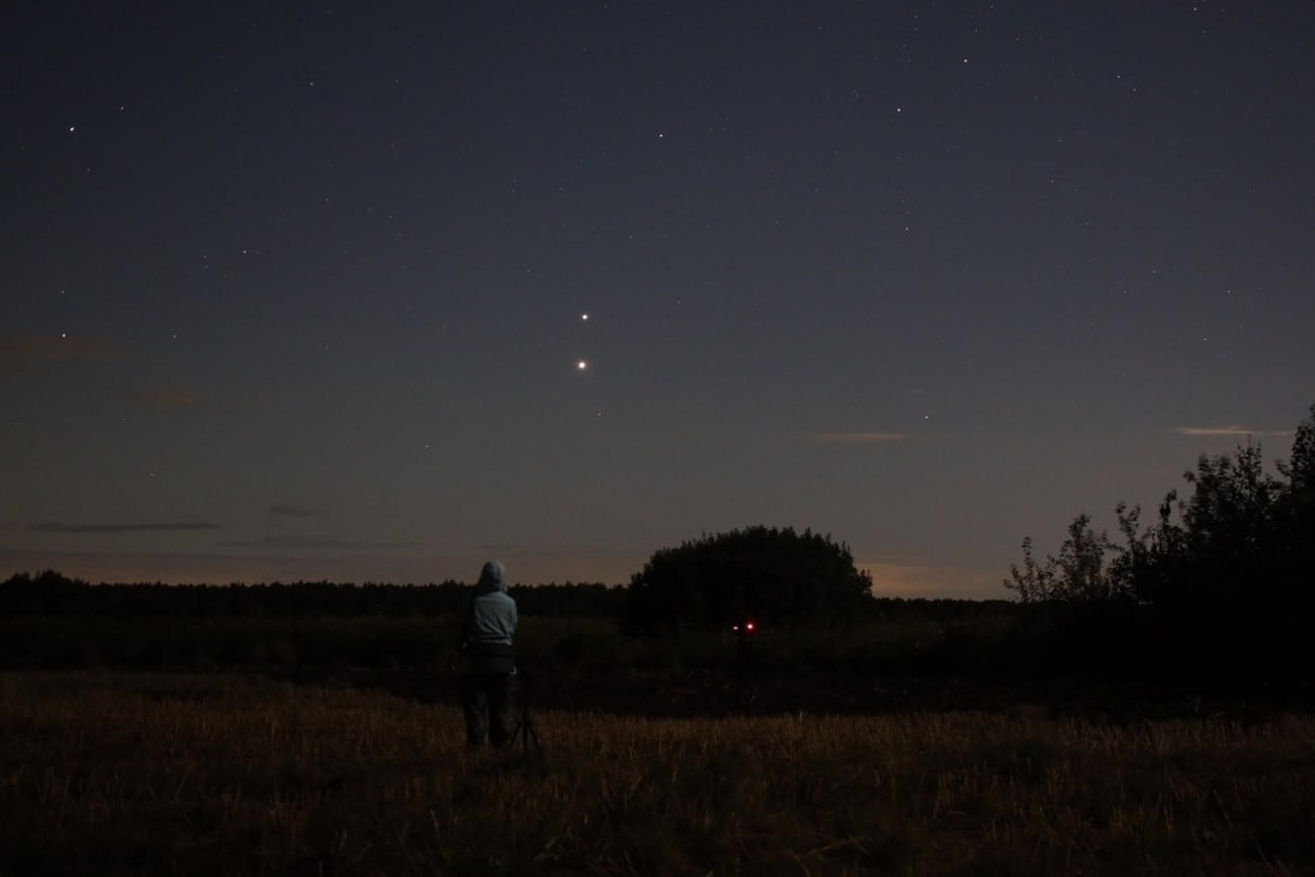 Самые яркие планеты на августовском небе выразительно расположились одна над другой.