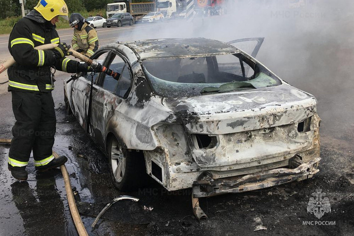 Как сообщает региональное МЧС, в горящем автомобиле людей не было.