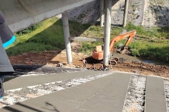 Здесь же ремонтируются два моста: уже наполовину завершены работы по сооружению через Выссу, на второй половине моста уже демонтировано дорожное покрытие, гидроизоляция и перила. У моста длиной 59,2 пог. метра усилят опоры и армируют консоль.