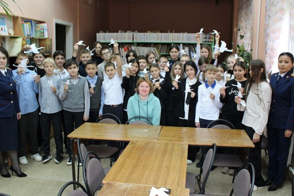 Вместе со своими детьми и учащимися школы № 22  Калуги сотрудники управления пришли в городскую библиотеку и изготовили бумажные символы акции.