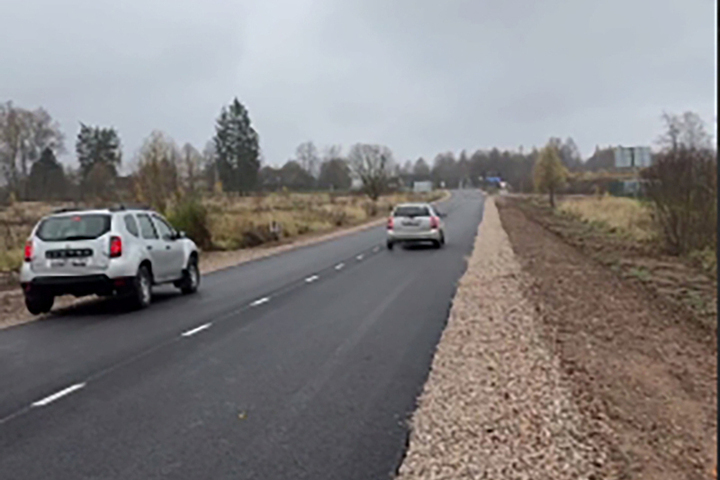 На участке уложено новое асфальтовое покрытие, укреплены обочины, нанесена разметка и установлены дорожные знаки.