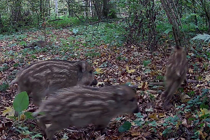 В заповеднике «Калужские засеки» фотоловушки вновь зафиксировали молодое поколение кабанов.