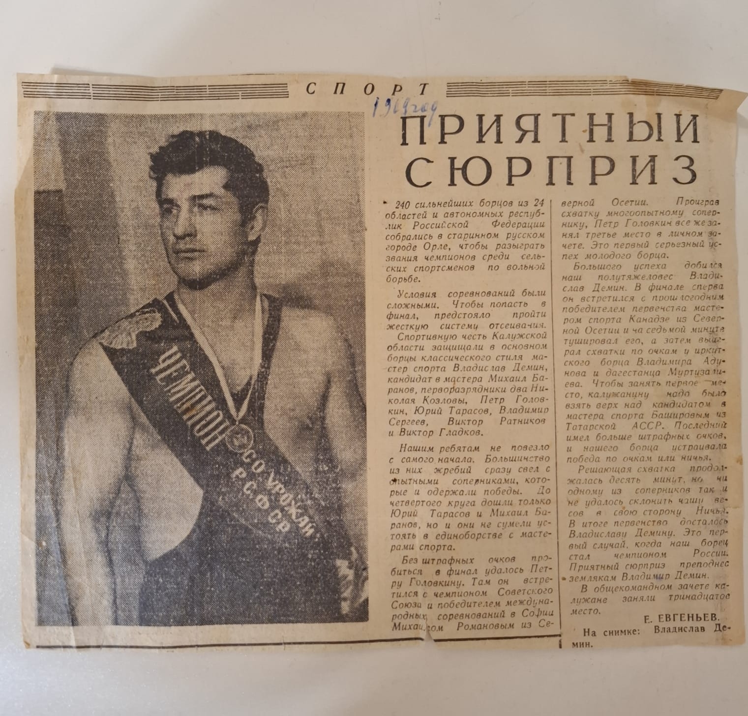 Мастер спорта по борьбе, кандидат в мастера спорта по волейболу — Владислав Дёмин был буквально легендой калужского спорта. Ведь он имел разряды по более чем 10-и видам спорта. Ему не было равных в волейболе, баскетболе и метании дисков.