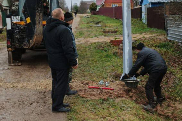 Здесь идёт монтаж новых опор освещения. Контролирует ход работ лично глава муниципального округа Николай Козлов.