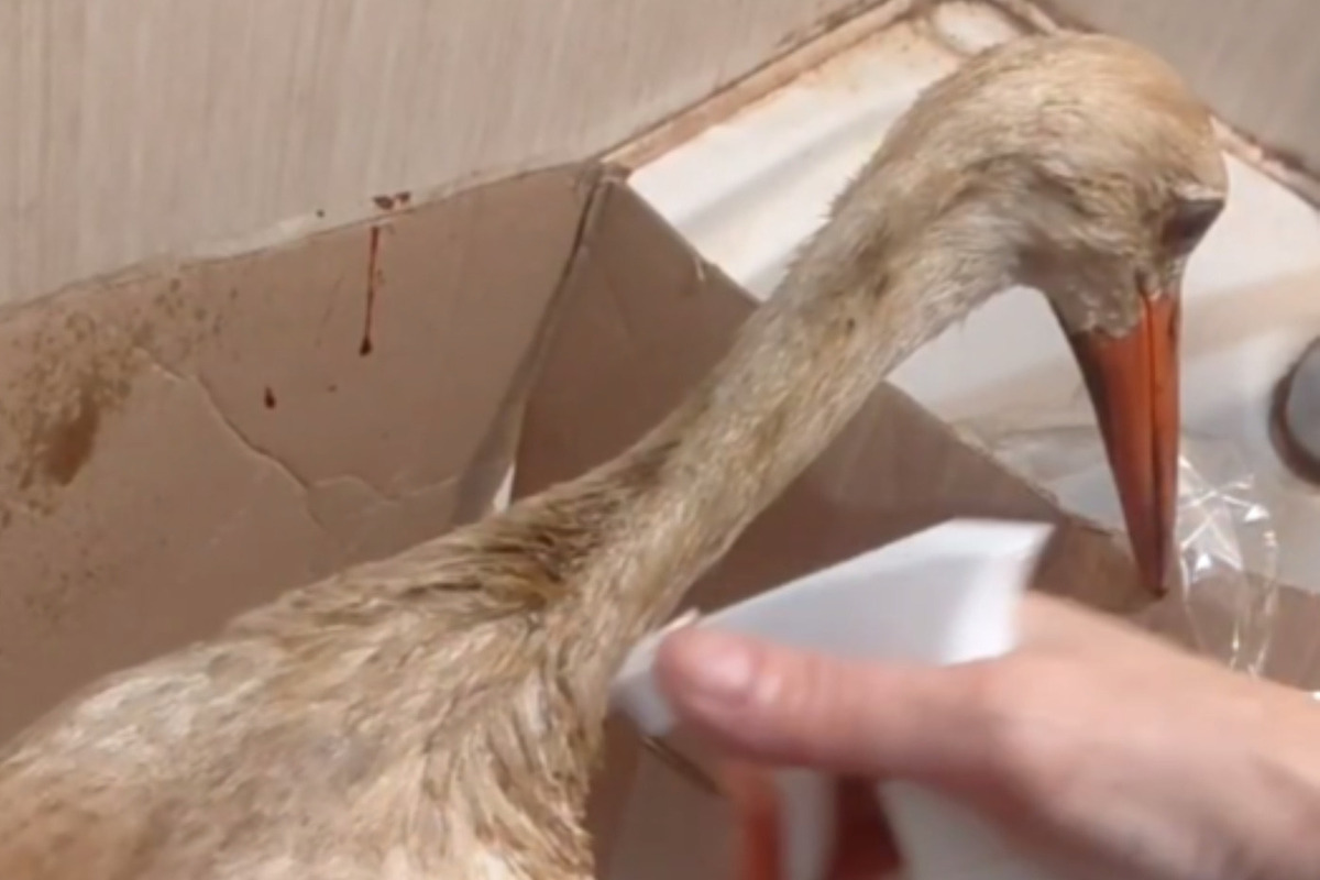 Он прибыл из Кирова с помощью добровольца, который вызвался помочь центру реабилитации диких животных в спасении птицы.