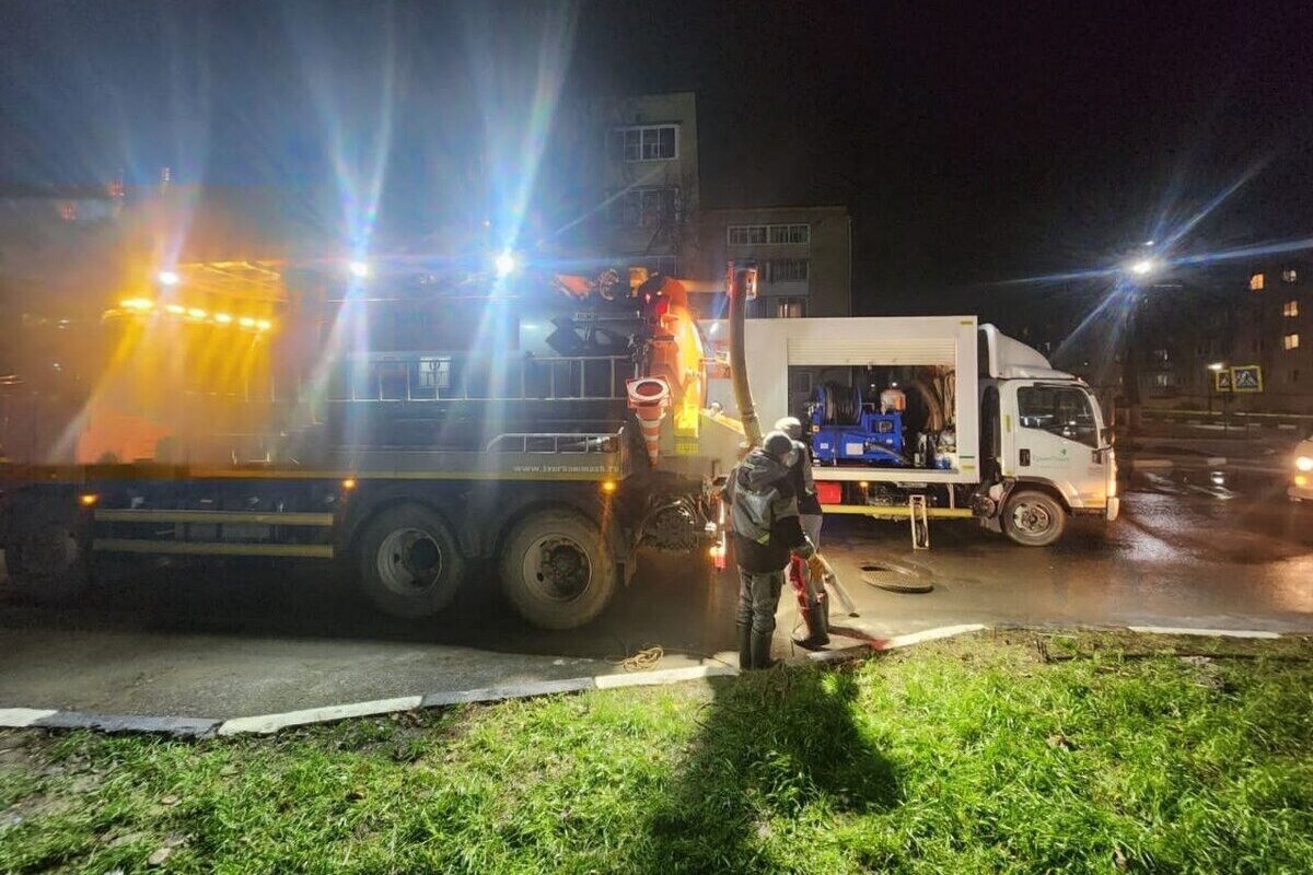 Минувшей ночью машина областного водоканала промывала канализацию во всем городе.