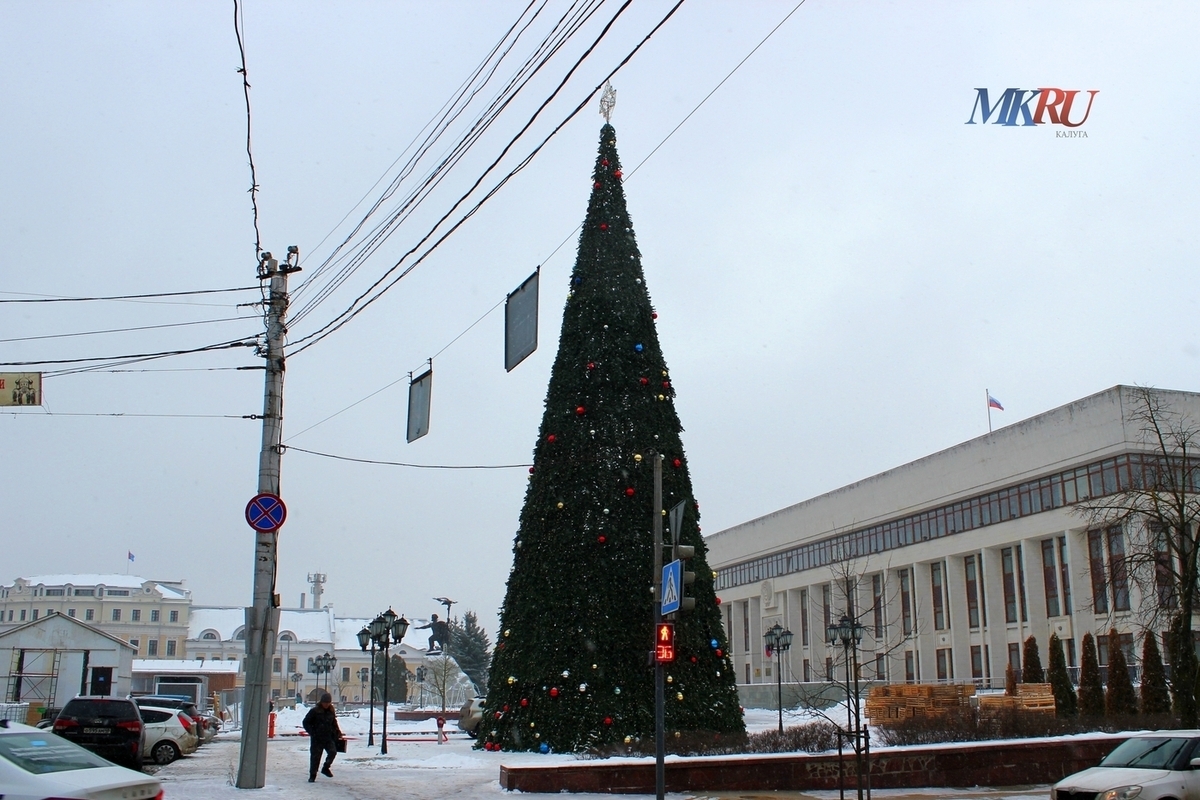 На площади Старый Торг в Калуге уже устанавливают каркас главной елки города.