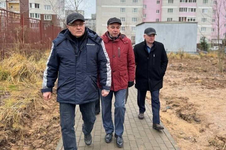 Глава города Дмитрий Денисов провёл выездное совещание и отметил, что подрядчик уже выполнил большую часть задач: готов новый тротуар и завершён лестничный марш.