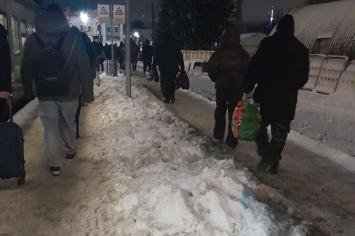 Своевременно не производятся работы по очистке от снега на калужских перронах. Также здесь нет следов применения противогололёдных материалов.