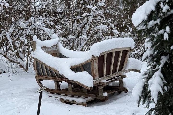 «Бережно укутанный пушистым снегом сад, словно завернулся в мягкое белое одеяло», - рассказывают хранители дома Ракицкого.