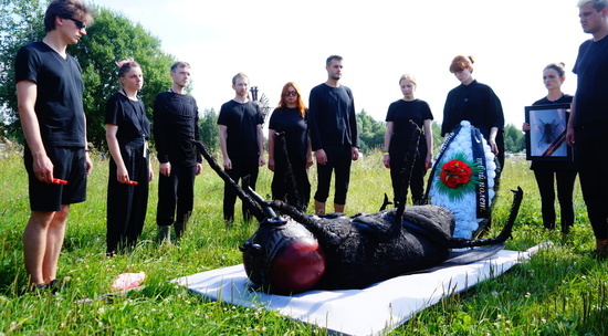 Такой перформанс подготовили для гостей фестиваля Маша Кечаева и Алексей Коханов. По версии авторов 26 июля в Никола Ленивце в расцвете сил скончалась Musca Domestica, известная всем как муха комнатная, из семейства Muscidae группы короткоусых отряда двукрылых.