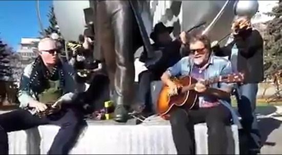 Музыканты группы "Аквариум", лидером которой является легендарный Борис Гребенщиков, спели на улице Обнинска под открытым небом. Рок-звезды расположились у памятника первопроходцам атомной отрасли на Треугольной площади.