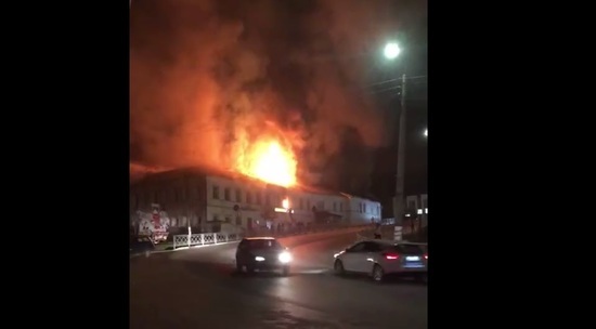 Видео с места пожара попало в соцсети. Бушевавший в здании огонь был виден далеко за пределами города.
