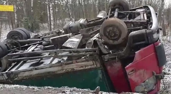 По словам очевидцев произошедшего, перед "Мазом" резко затормозила легковая машина. Большегруз также начал тормозить, но на скользкой дороге его занесло. Машина перевернулась.