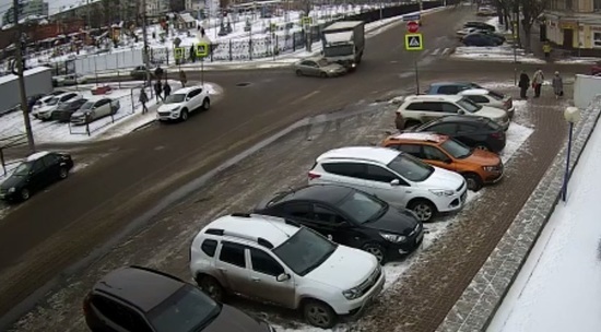 На записи отчетливо видно все произошедшее, виден и виновник аварии - водитель грузовика.