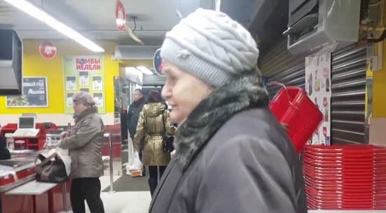 Пенсионеры не имеют особого дохода и купить позволяют себе лишь самое необходимое. В основном это колбаса или молоко. Одна из женщин, благодаря щедрости блогера, вернулась за колбасой. Еще одна бабушка в знак благодарности угощает блогера шоколадными конфетами.