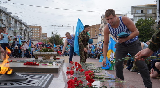 В Калуге в воскресенье, 2 августа отметили 90-ую годовщину основания Воздушно-десантных войск. Праздничные мероприятия начались с традиционного шествия десантников вместе со своими семьями по центральной улице города. Они дошли до Площади победы, где к Вечному огню возложили цветы. После этого колонна переместилась к памятнику воинам-интернационалистам. Здесь состоялся митинг. Выступали ветераны, представители городской власти и приглашенные гости. Не обошлось и без минуты молчания. Много десантников погибло в горячих точках. После официальной части, служившие в ВДВ разделились на группы и отправились отмечать праздник.