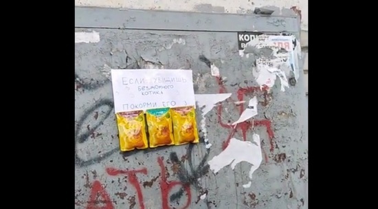 "Если увидишь бездомного котика, покорми его!" – говорится в объявлении блогера.