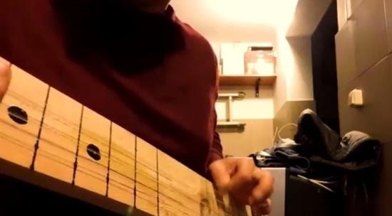 И как-то калужанин вспомнил о своём увлечении игрой на гитаре. Взял первую попавшуюся доску и начал мастерить музыкальный инструмент. Вместо струн, при помощи саморезов натянул обычную строительную шнурку. Через полчаса ловких манипуляций импровизированная гитара начала воспроизводить звуки.