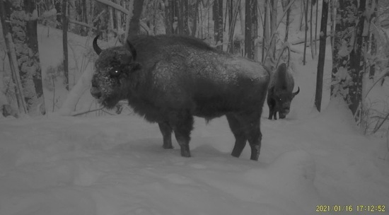 В Калужской области зубры успешно обзаводятся потомством, осваивают территорию. В нацпарке их уже обитает около сотни. Лесные камеры установлены на территории Березичского участкового лесничества и показывают повадки этих животных.