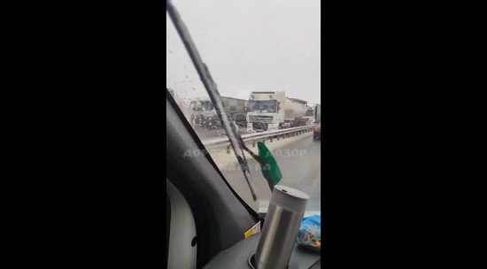 В Калужской области на федеральной трассе М-3 «Украина» на территории Боровского района в субботу, 2 апреля движение блокировано множеством аварий. Движение все стоит в сторону Калуги. Пробка из автомобилей растянулась на много километров. Все запечатлено на видеорегистратор ехавшего по встречной полосе автомобиля. Очевидцы утверждают, что в аварии попали более 10 машин. В том числе в ДТП попал рейсовый автобус, который едет в Дятьково. В настоящее время все обстоятельства произошедшего устанавливаются. Видео «Дорожный Дозор Калуга».