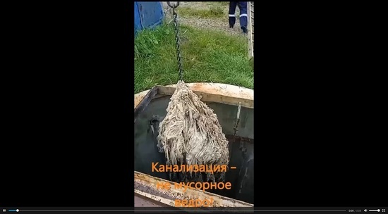 Водоканал показал жителям Калужской области, что является настоящим бедствием для системы водоотведения. Специалисты водоканала сняли реальный процесс очистки системы водоотведения после засора. «Клубок влажных салфеток и тряпок – такой «улов» уже не в диковинку для аварийной бригады водоканала. Засоры являются серьёзной угрозой для бесперебойной работы системы водоотведения», - говорят в водоканале. На подобные вызовы специалисты выезжают до 300 раз в месяц.