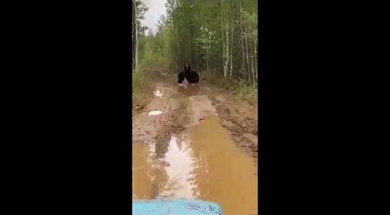 В лесу деревни Белая Перемышльского района Калужской области произошел невероятный случай. По лесной дороге ехал тракторист и увидел, как дерутся два медведя. Косолапые просто вывались на дорогу из-за деревьев. Схватка была довольно серьезной, медведи себя не жалели и не боялись испачкаться в грязи. Драка продолжалась около минуты, все это время тракторист стоял и снимал происходящее на видео. Это бы продолжалось еще долго, но трактористу надо было ехать дальше. Бурых пришлось разнять громким ревом мотора.