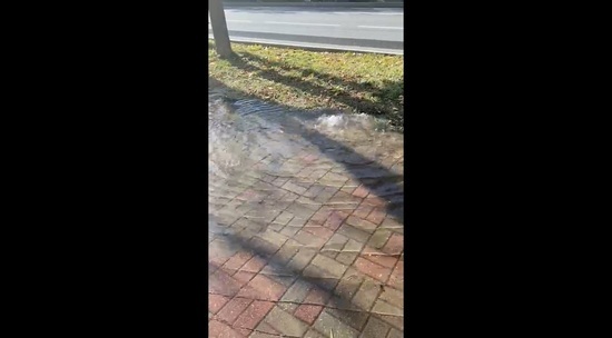 В центре Калуги забил фонтан. Аварийная ситуация произошла в четверг, 28 сентября на сетях водоканала по улице Ленина, 61/5. Вода мощным потоком бьет из-под люка и разливается по тротуару. Воды так много, что она затопила всю пешеходную зону и часть проезжей части.