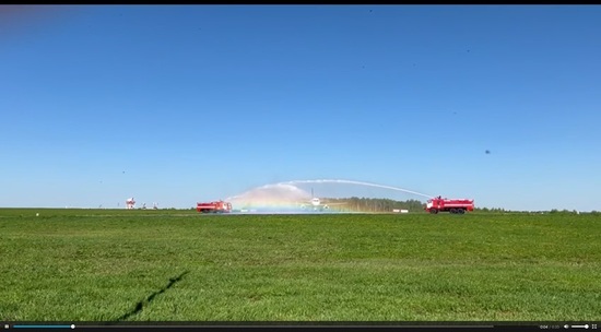 Калуга в понедельник, 29 апреля встретила первый рейс из Калининграда. По традиции новое направление встречается водяной аркой. Полеты начала выполнять авиакомпания «Северсталь» на самолетах Sukhoi Superjet-100. За раз авиасудно вмещает 93 пассажира. В обратный путь из аэропорта Калуги улетел почти полный самолет. Рейсы будут выполняться по понедельникам до конца этого года.