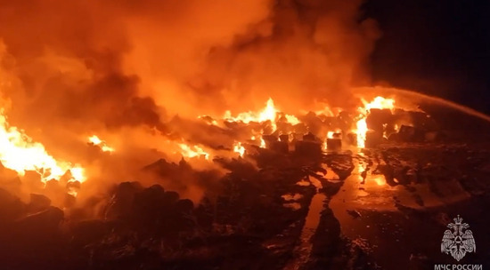 Общая площадь возгорания на производстве в деревне Окороково Жуковского района составила почти 1200 квадратов.
