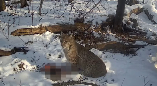 На этот раз фотоловушки заповедника застали рысь за обедом.