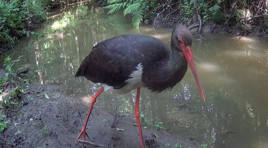 Черный аист опять пришел к фотоловушке калужского заповедника.