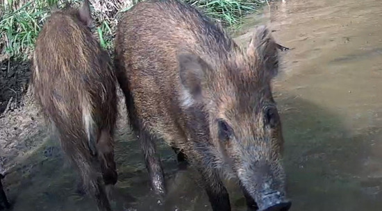 Малыши из «Калужских засек», за которыми калужане наблюдают с помощью фотоловушек увидели фотоловушку во время одной из своих прогулок.